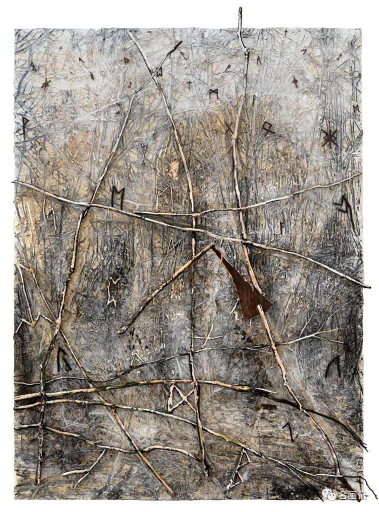 然而千年帝国只在短短几年内就遭受灭顶之灾,日耳曼尼亚也成为一件著名的未完工建筑,基弗,在这个疯狂的帝国覆灭前两个月出生。在柏林的断壁残垣中,基弗度过了他的童年。虽然没有经历过战争,但是他生长于“废墟文化”中,来自废墟的意象对他创作的影响无疑是举足轻重的——来自德国及古文明的废墟是他的刻画对象,铅、稻草、水泥、钢铁、甚至是飞机的残骸都是他创作的材料。巨幅画面给人以威压,而画面粗粝的纹理更给人以来自原始的荒芜沉寂,画面中的废墟在基弗新表现主义的渲染下,更加具有历史厚重感与废弃的衰败感。
